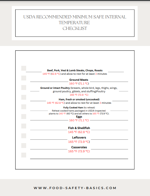 Safe Internal Temperature Checklist